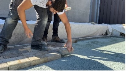 La pose des klinkers poreux a été réalisée par la société « To Be Tree » dans le but d’avoir un espace démonstratif pour les futurs jobistes qui vont devoir mettre en place les 5 revêtements restants.